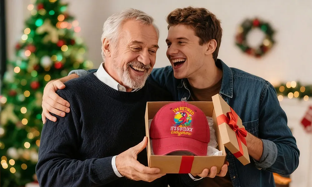 Step onto the porch, the golf course, or the cruise deck, and watch what happens: neighbors stop to chat, friends laugh, strangers compliment him—because he's wearing the imwing™ HappyHour Cap.